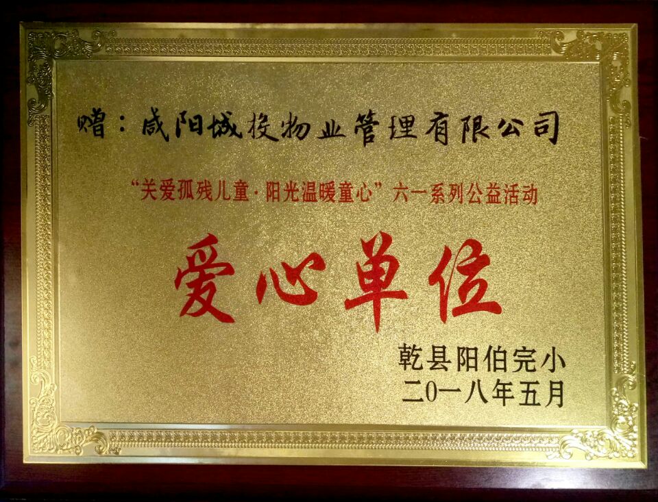 2018年5月榮獲“愛心單位”榮譽